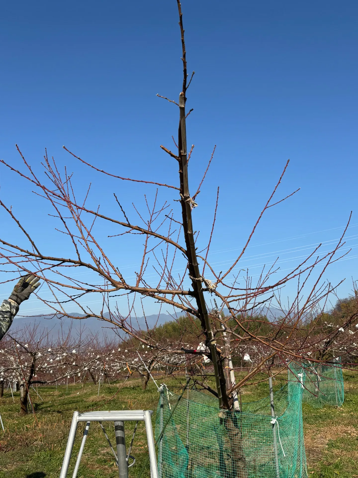 枝には小さな芽が出ておりますが・・・葉がない状態で枝の成長の向きなどを考えて・・・