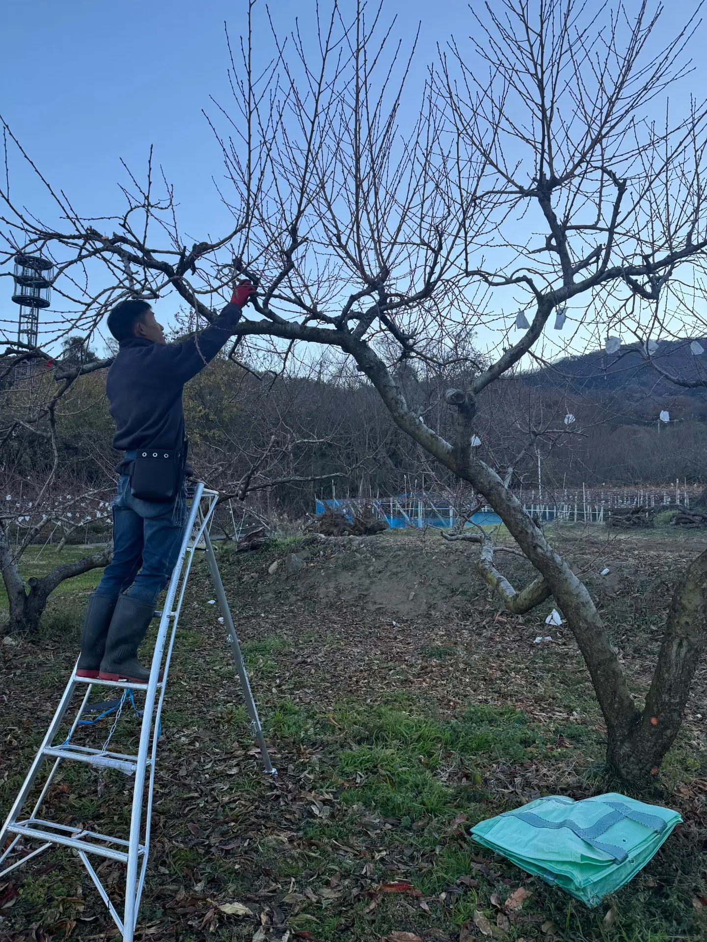 剪定(若木)の熱い指導を受け、果樹班3人が挑みました。